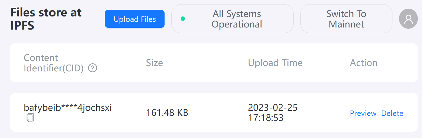 - Once the file is uploaded, you'll see a unique IPFS Content Identifier(CID) that represents the file. You can use this Content Identifier(CID) to retrieve the file from the IPFS network.